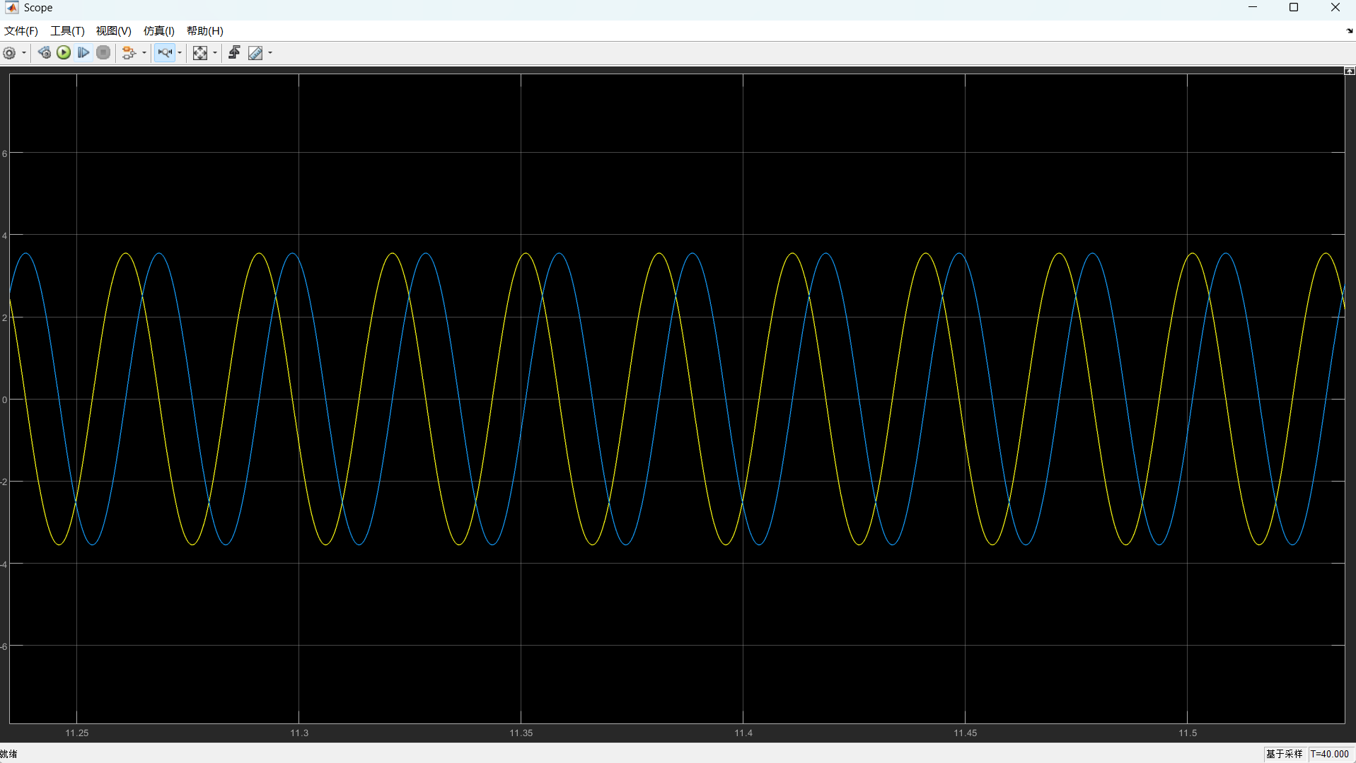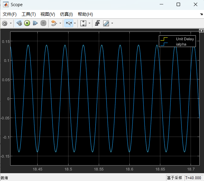 选取合适增益后运行,用示波器查看i_α和hat(i_α)波形发现观测收敛,如下: