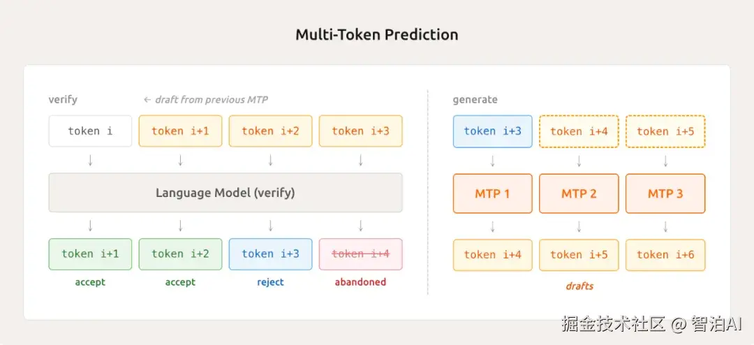 实际测试显示,该技术平均每次可处理2.8至3.6个Token,推理效率提升达2至2.6倍。其优势不仅体现在推理环节,还能优化训练过程中的采样速度,降低GPU闲置率,达成训练与推理的双重加速效果。