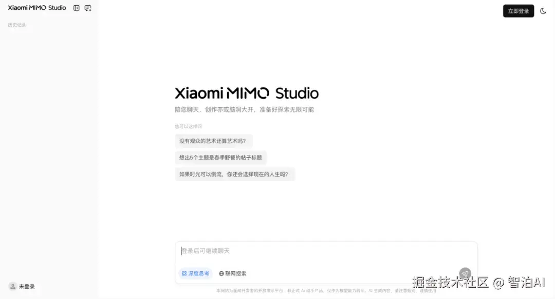 根据官方体验页面信息,MiMo-V2-Flash 还具备深度思考和联网搜索能力,不仅可用于日常对话交流,还能在获取实时数据、追踪最新动态或验证资料时发挥作用。