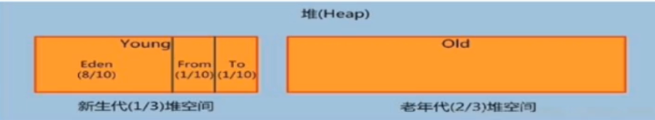 堆区按照垃圾回收可以分为新生代与老年代,新生代又可以分为eden区、survivor0区、survivor1区。默认新生代占三分之一,老年代占三分之二。Eden区与两个survivor区的比例为8:1:1。