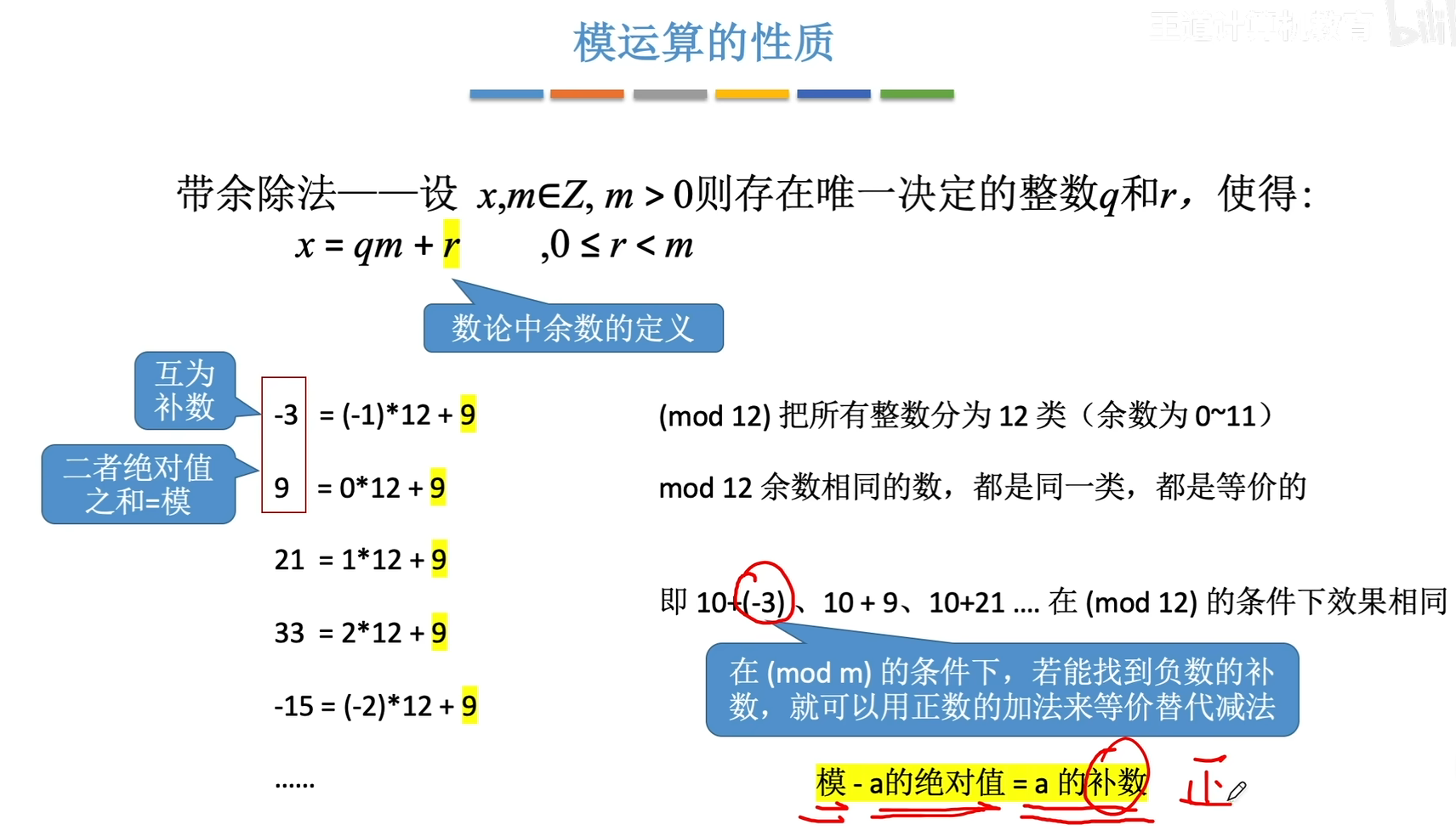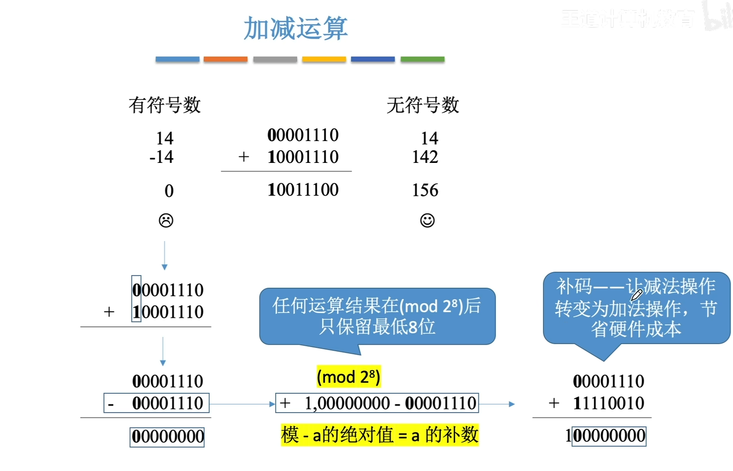 互补的两个数的绝对值相加等于模,所以模减去减数的绝对值就是我们要求的另一个正数,也就是减数的补数,所以简而言之,减去一个数,就可以直接加上这个数的补数。