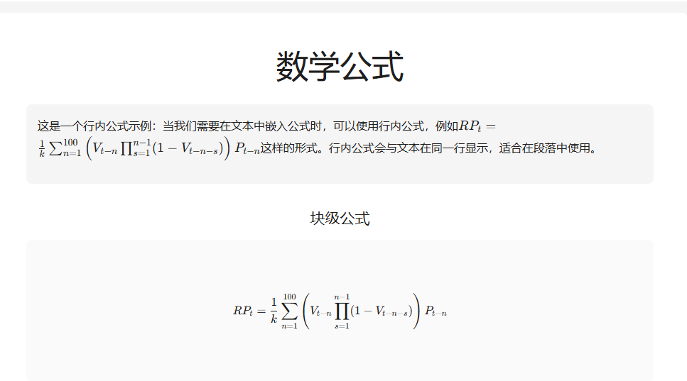 这是一个行内公式示例:当我们需要在文本中嵌入公式时,可以使用行内公式,例如