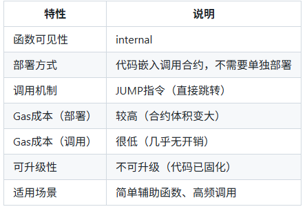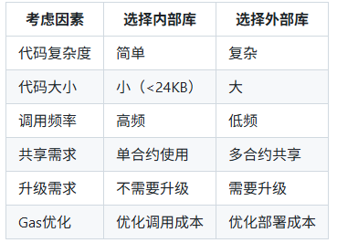 - Gas优化:通过代码复用降低整体成本,特别是内部库