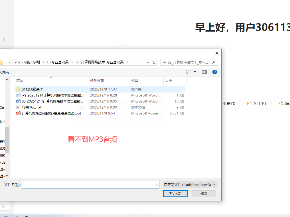结果发现豆包附件上传,不能看到音频格式。就是不能转MP3