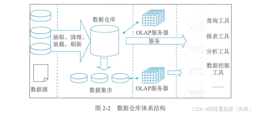 数据仓库:面向主题、集成、非易失,支持决策分析(OLAP)。