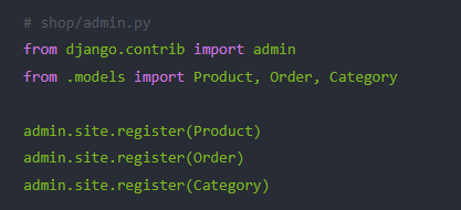 在 shop/admin.py 中注册模型,管理员可以通过 Django Admin 管理商品和订单。