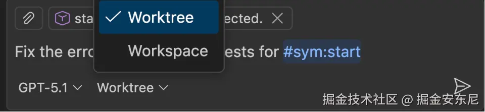 这使你能构建更丰富、更精确的 Prompt,例如直接附加一个报错问题并让 Agent 修复,而无需手动指定文件路径和行号。