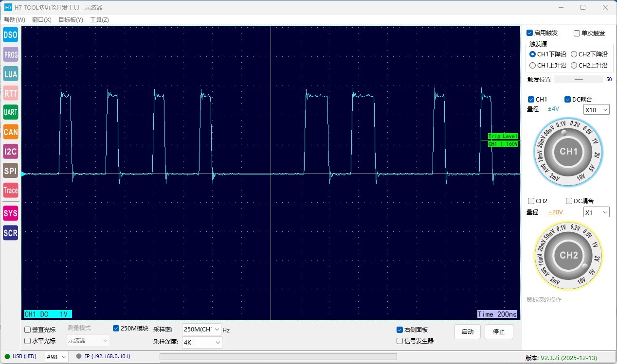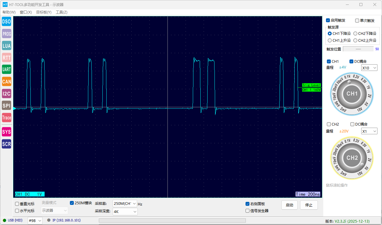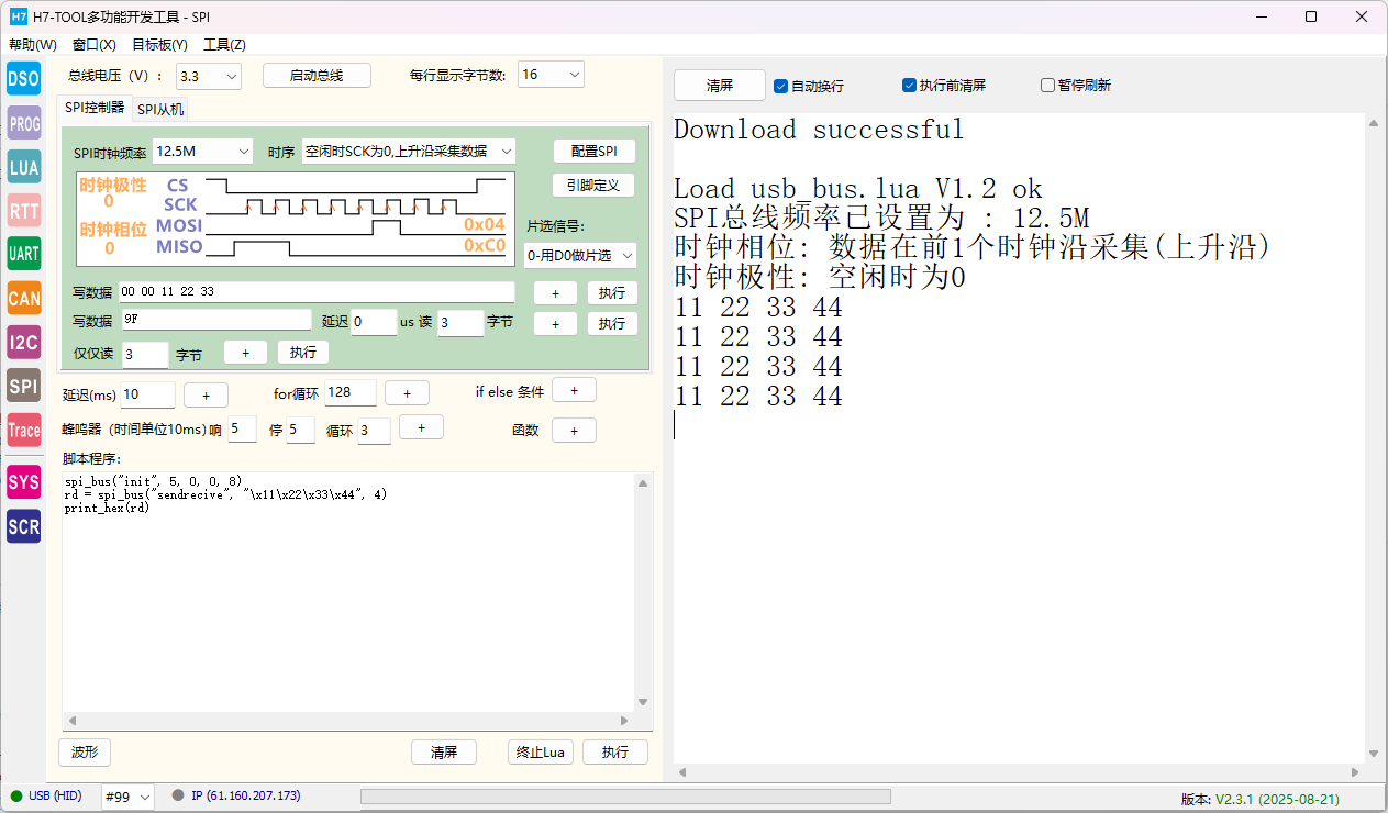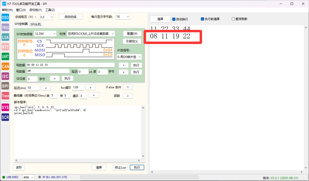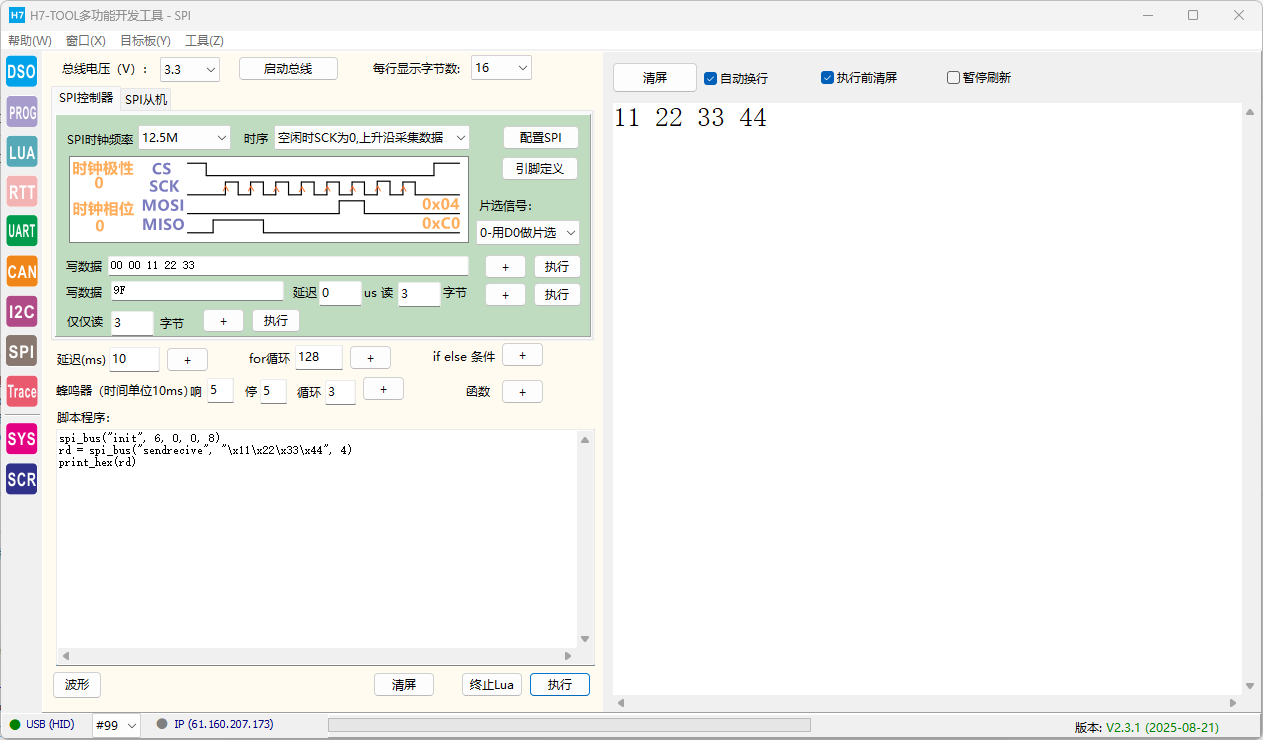 这里以我们H7-TOOL的SPI控制器LUA小程序来配置,主要是方便测试
