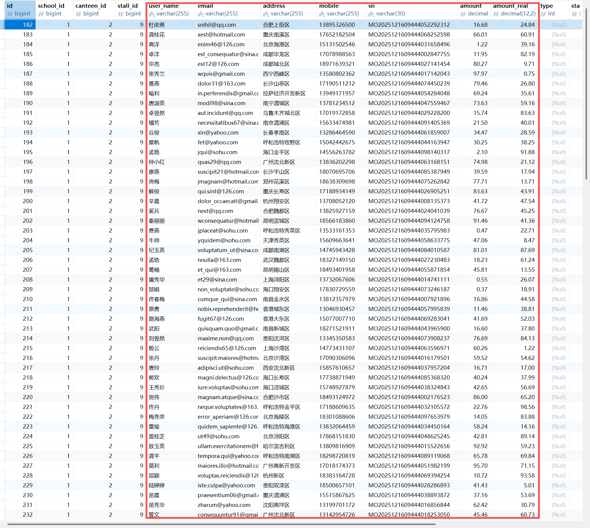 相比自己创建的测试数据,还是真实一些,对于后续测试,表查询效率优化,索引是否生效检查等都有积极的意义。