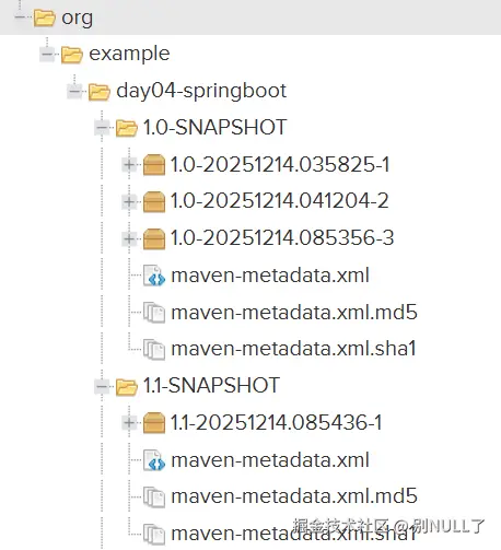 如果pom中配置的version是Release版本,当版本号不改动时,多次执行mvn deploy构件只有第一次会被部署到Release仓库。后续执行的mvn deploy会报错,Snapshot是多次部署不会报错,查看Snapshot仓库可以看到多个带时间戳的构件版本。