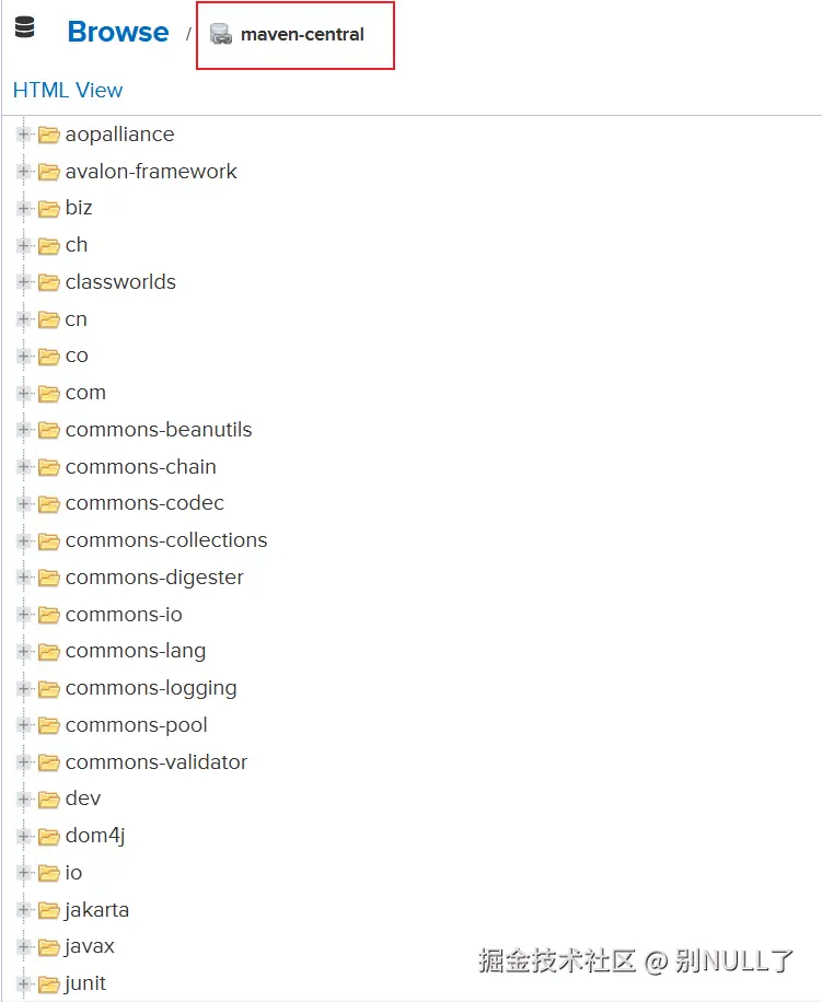 下图是我配置nexus私服后,maven项目下载完依赖后maven-central仓库的内容,已经将本地仓库没有的依赖下载到了maven-central仓库。