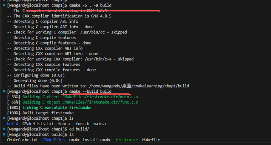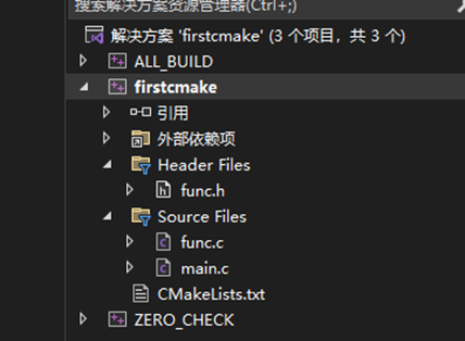 在您的代码中:project(firstcmake) 将项目命名为 firstcmake。