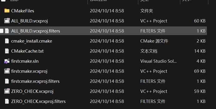 在windows下面,cmake构建后会生成 .sln 和 .vcxproj 文件;使用这两个文件就可以生成 .exe程序了。