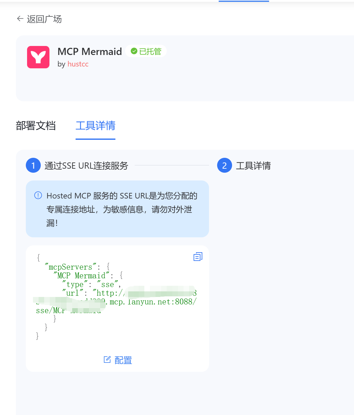 点击进入工具详情页后,会发现该 MCP 服务呈现"托管"状态。这是一个关键的技术细节。