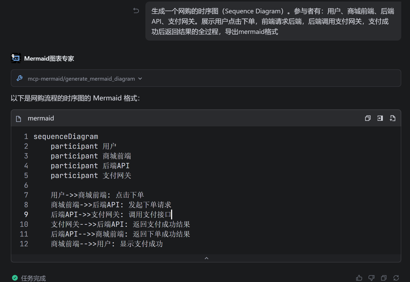- 低门槛:用户无需学习繁杂的 Mermaid 语法,只需描述需求。