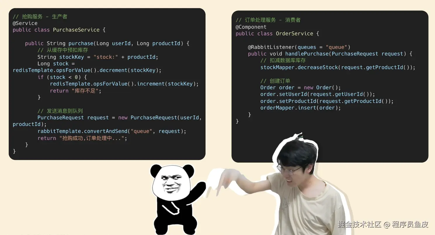 一个月后,你意气风发地找到鱼皮:鱼皮 gie,我的抢购代码重构完了,快帮我看看能不能上线~