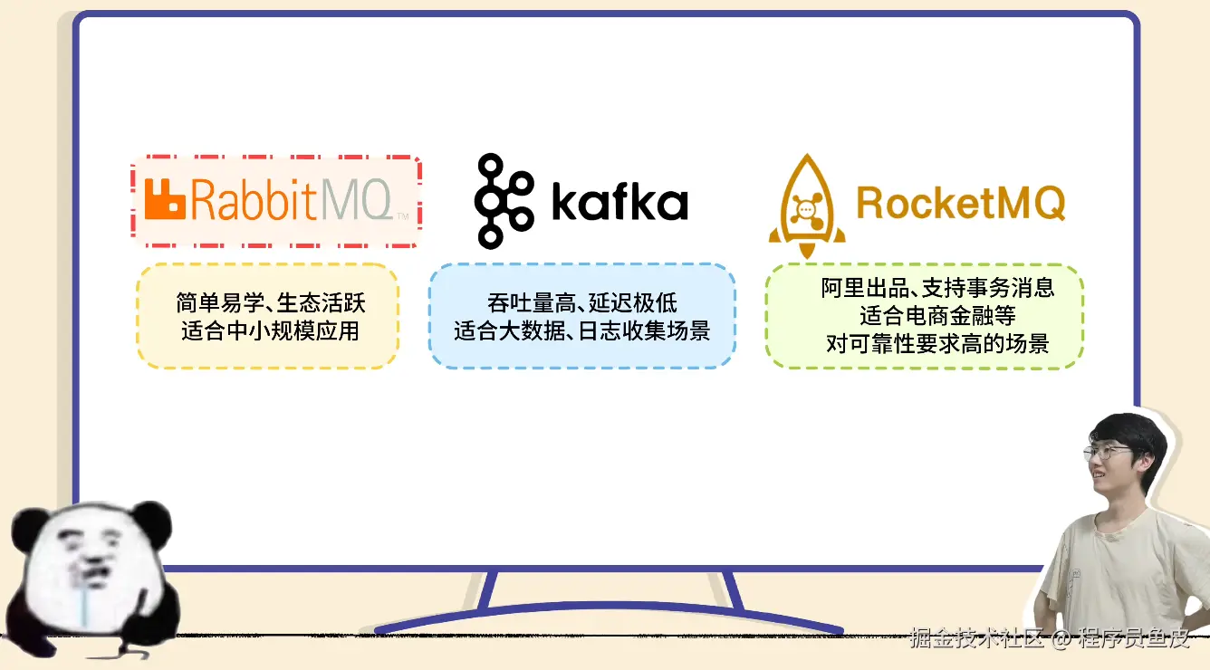 鱼皮:很有干劲嘛!主流的消息队列实现技术有: