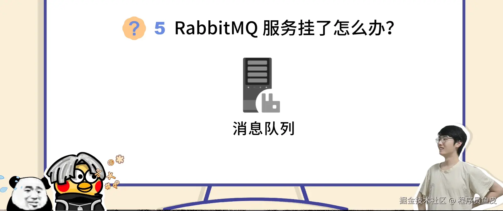 你也像鱼皮当时一样,耐心地给新人分享学习 RabbitMQ 的经验,让他们谨记 "消息队列是实战型技术,一定要多动手实践"。
