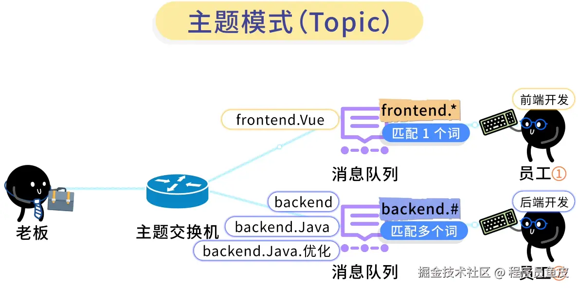 frontend.*(匹配 1 个词),能匹配frontend.Vue、frontend.React - 后端员工的队列绑定
