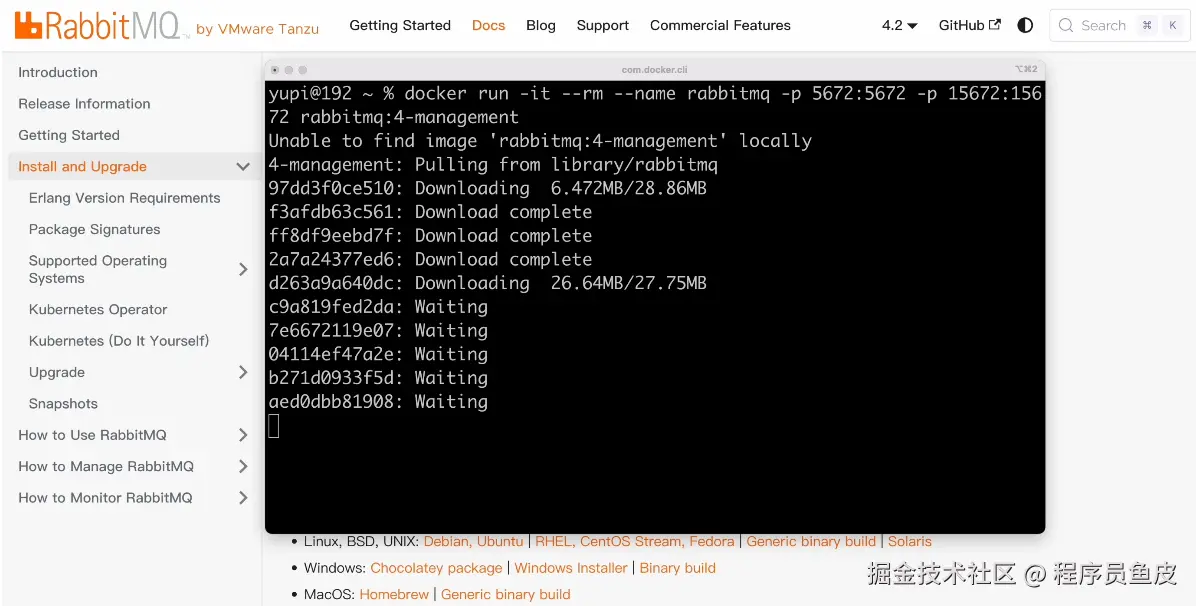 鱼皮:首先来安装 RabbitMQ,笨办法是先安装 Erlang 语言环境,再去 官网下载 MQ 的安装包并执行。