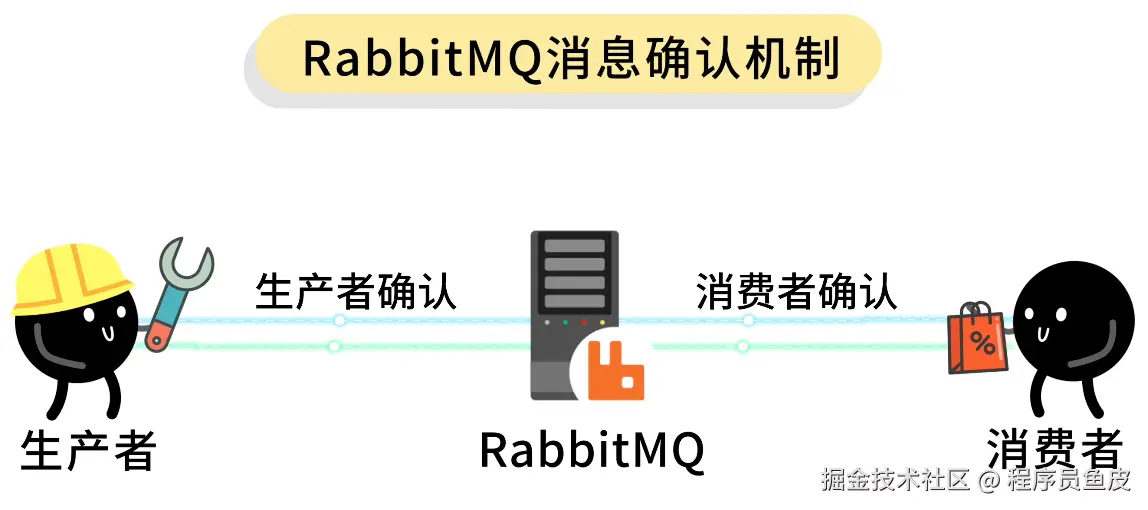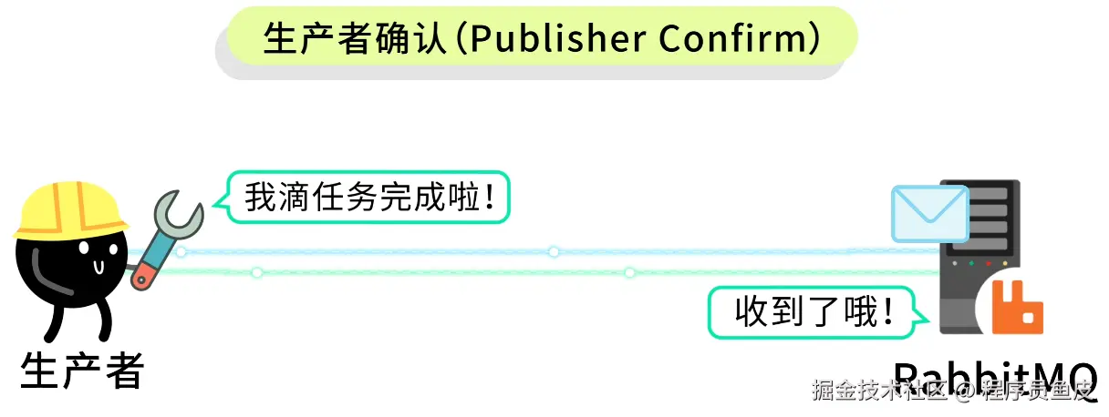 1)生产者确认(Publisher Confirm):生产者发送消息后,等待 RabbitMQ 的确认回复,确保消息真的被接收了。就像寄快递,你把包裹交给快递员,快递员要给你一个回执单,证明他收到了。