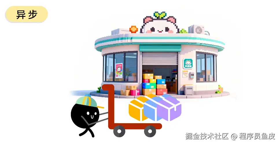 这样一来,快递员放下包裹就能走,不用费时间等你签收(异步)。