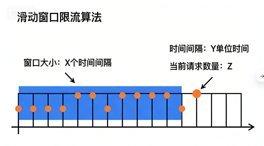 滑动窗口限流算法是对固定窗口计数器算法的优化,核心是将整体时间窗口拆分为多个等长的子窗口(时间片),通过"滑动"方式实时更新当前统计窗口的范围,并累加窗口内所有子窗口的请求数,以此精准控制流量,解决固定窗口的临界峰值漏洞。