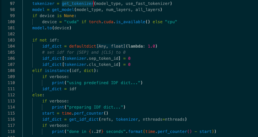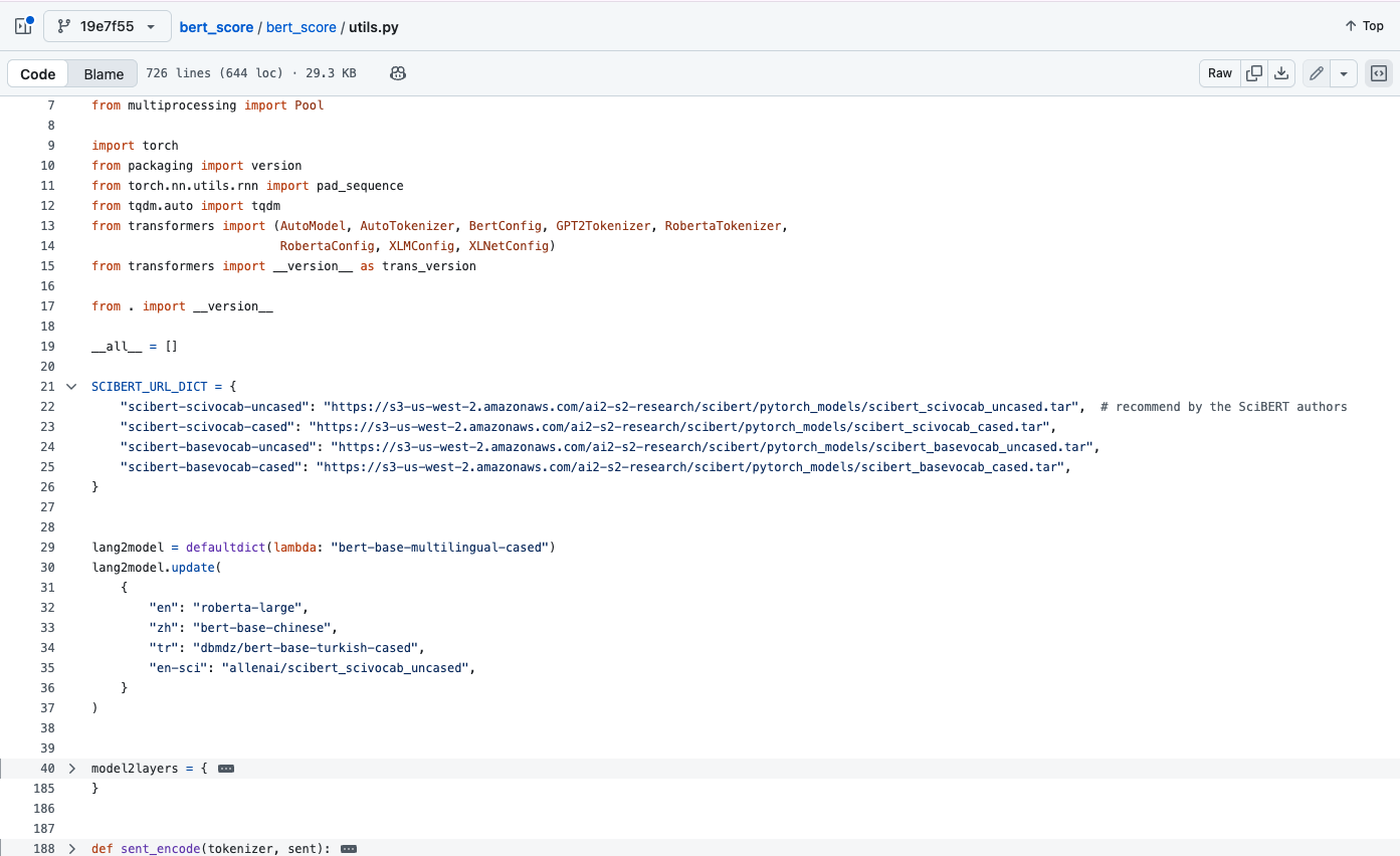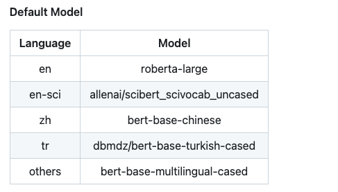 bert_score中通过model_type和lang两个参数来执行模型和对应的文本语言。