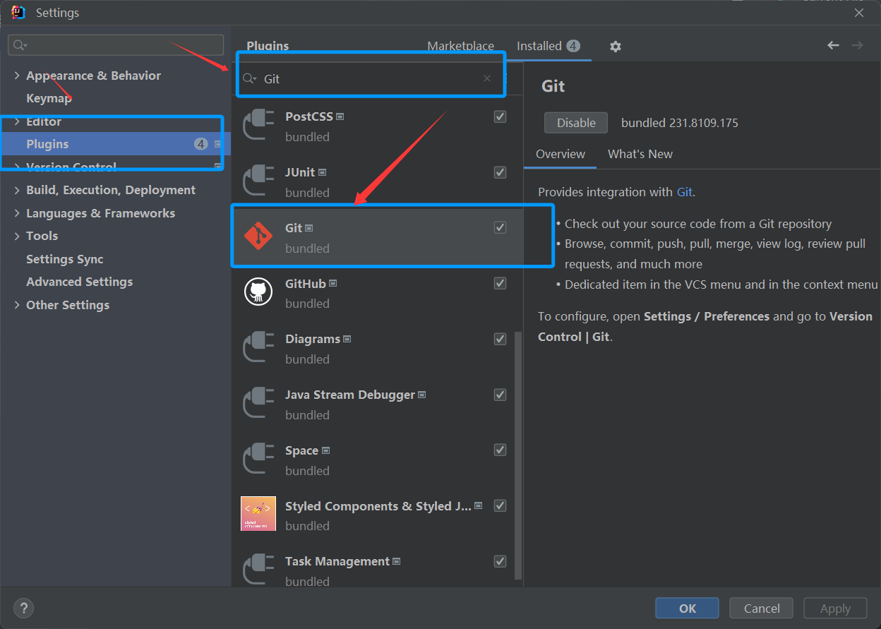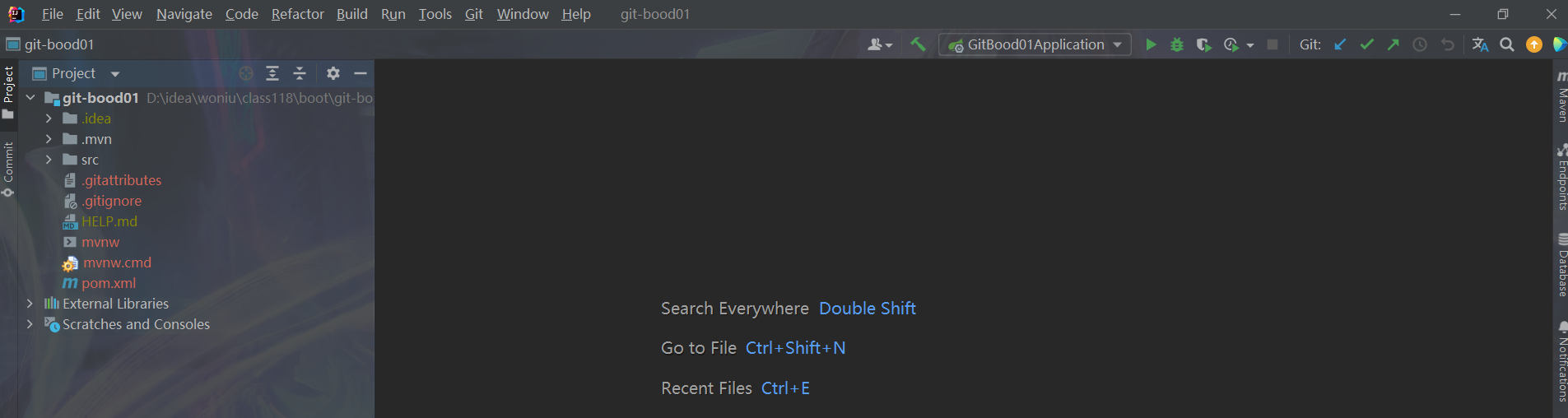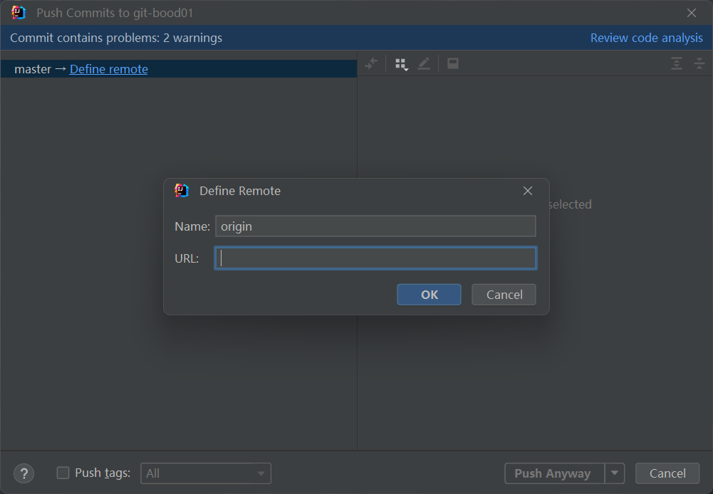 关联git,选中导航栏中的VCS下面Create Mercurial Repository,选中自己的项目,确认后CVS变成Git