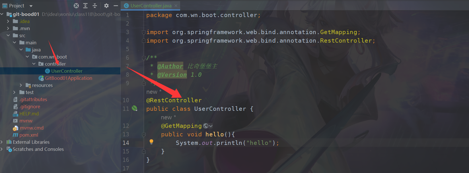 - 提交(Commit):记录一次代码变更的快照,包含作者、时间等信息。