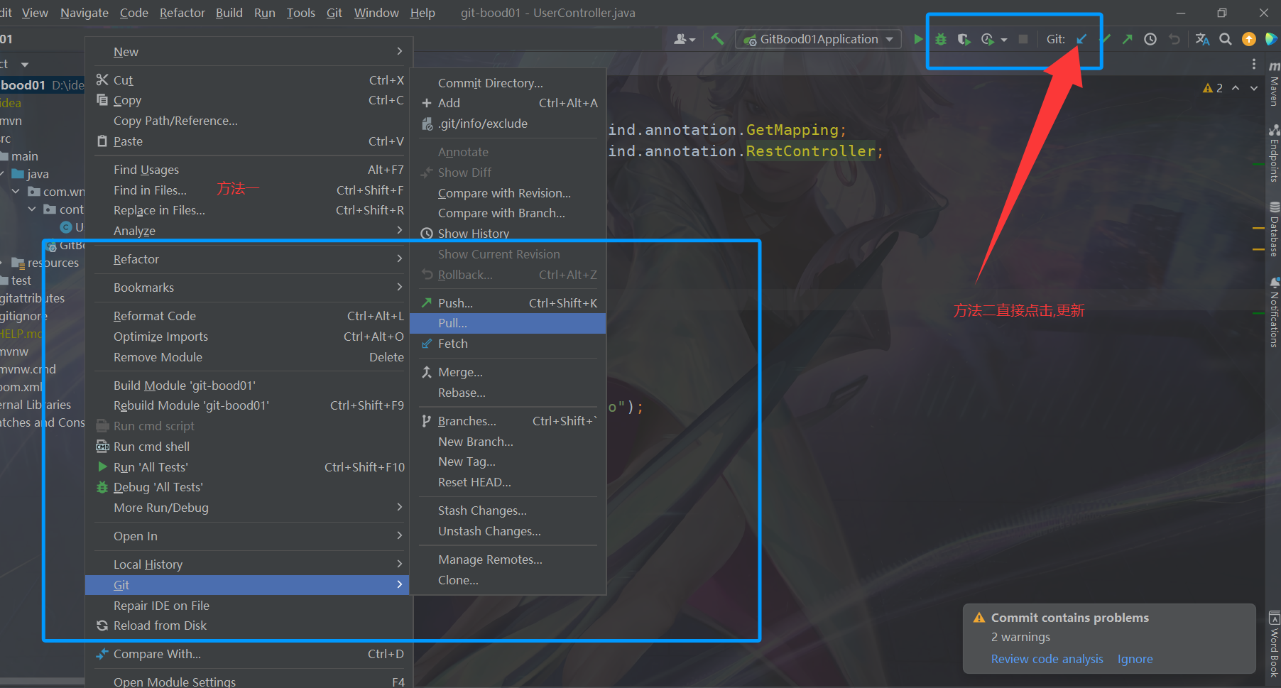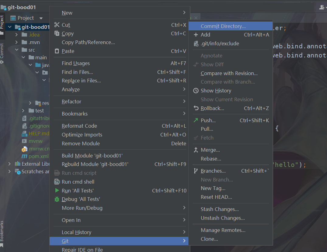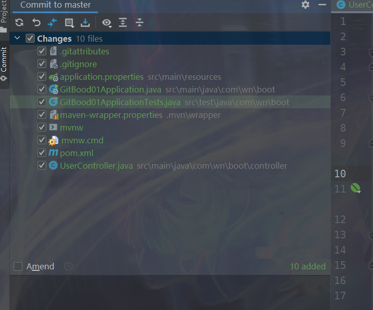 在此重复上一步操作,选择git中的commit 将代码提交到本地仓库中
