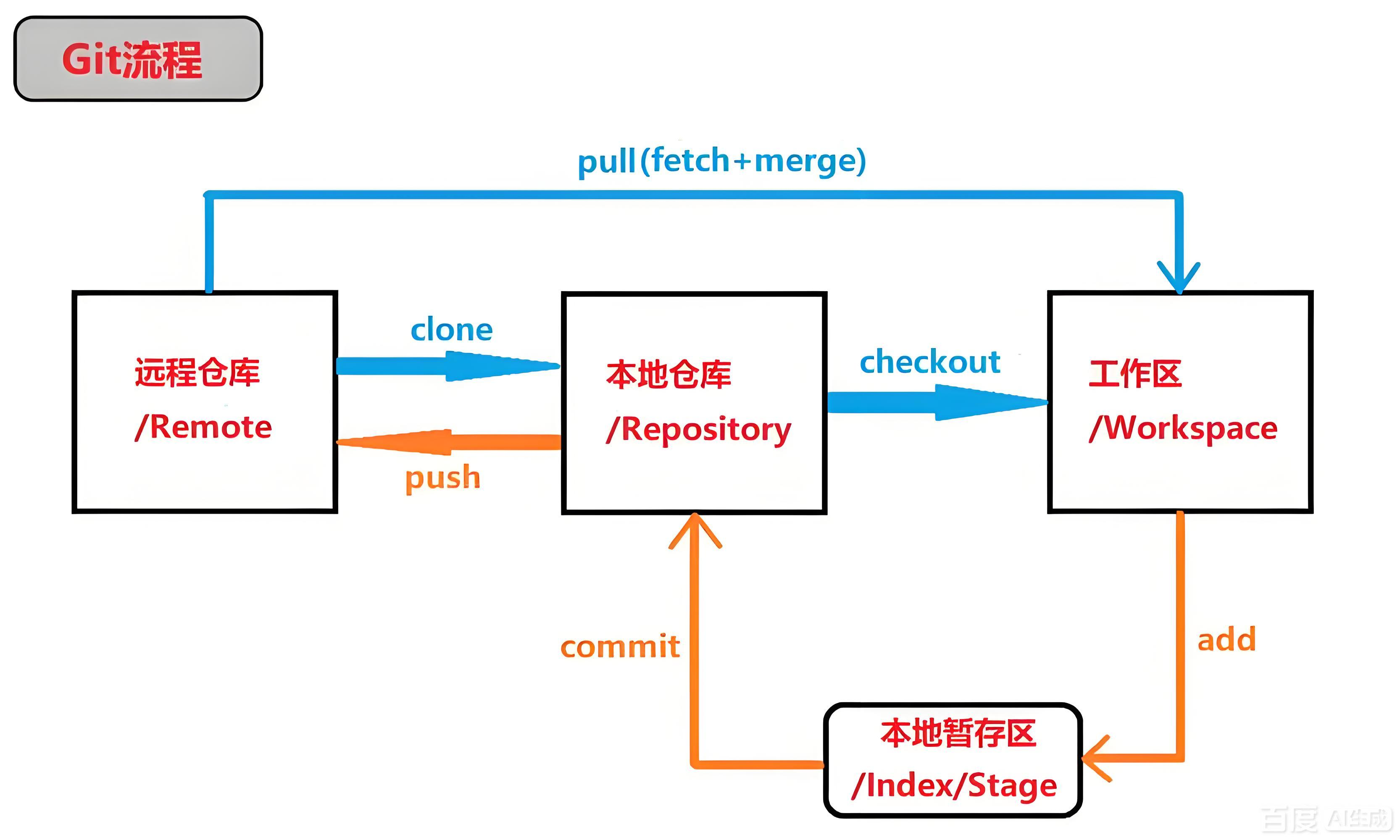 - 远程仓库(Remote):托管在服务器(如 GitHub、GitLab)上的共享仓库。