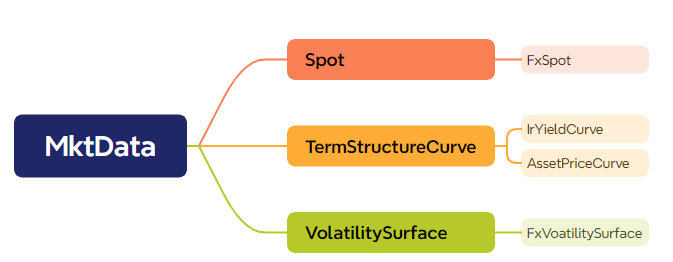 金融工具的定价需要用到即期/曲线/曲面等市场数据,DolphinDB 的 MktData 类是对市场数据的抽象,市场数据都继承自 MktData 基类,目前支持的市场数据类型如下: