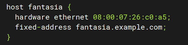 fixed-address fantasia.fugue.com; ###需要进行分配的IP地址