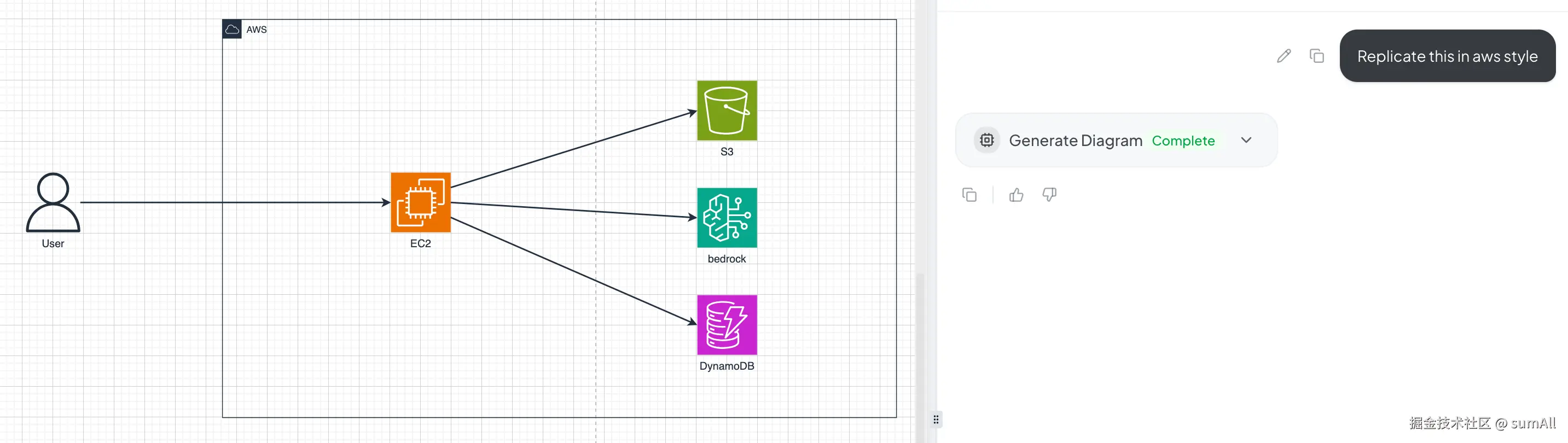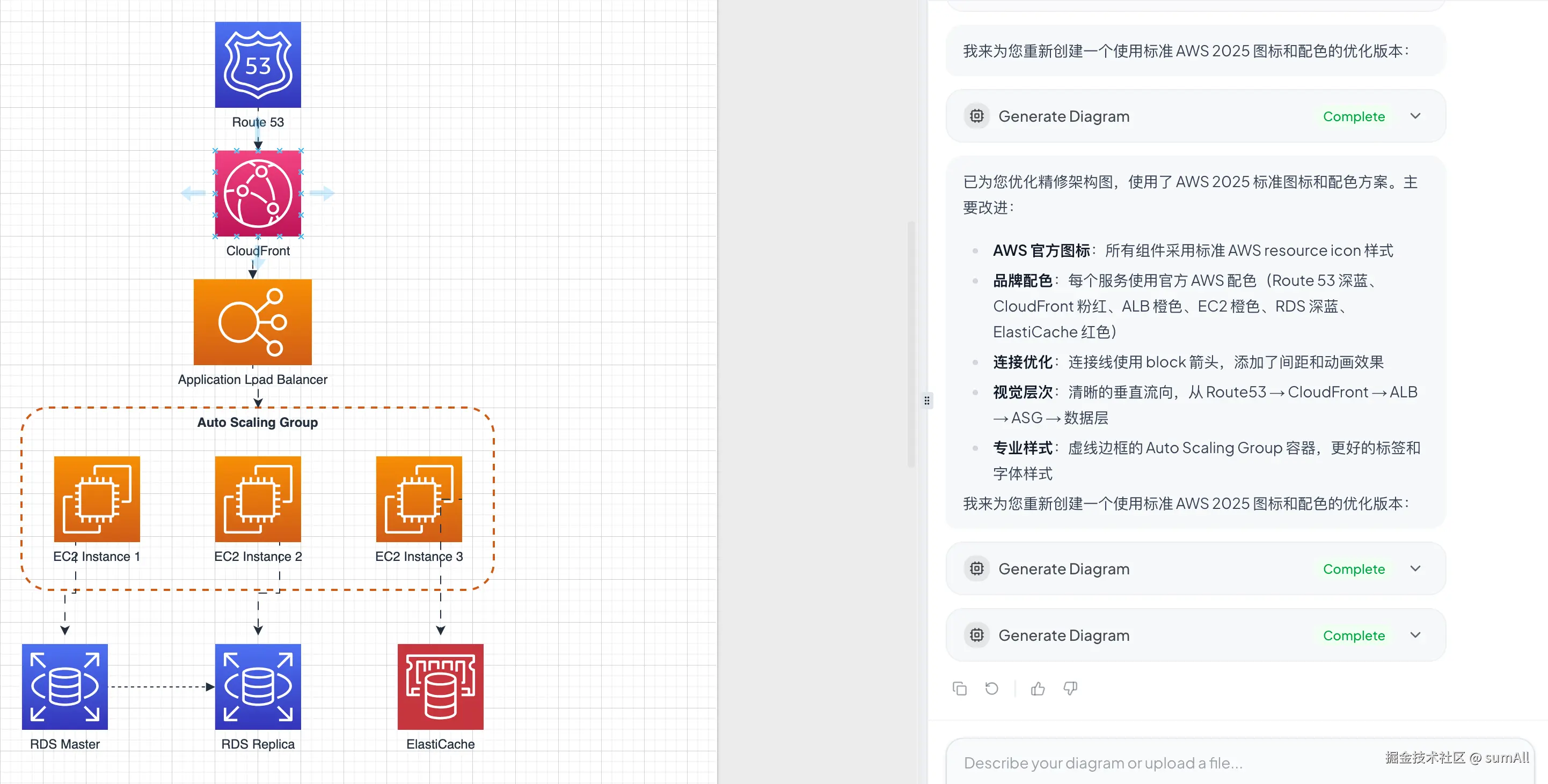 效果立竿见影:所有组件瞬间替换为官方 AWS 图标,专业度直接拉满。