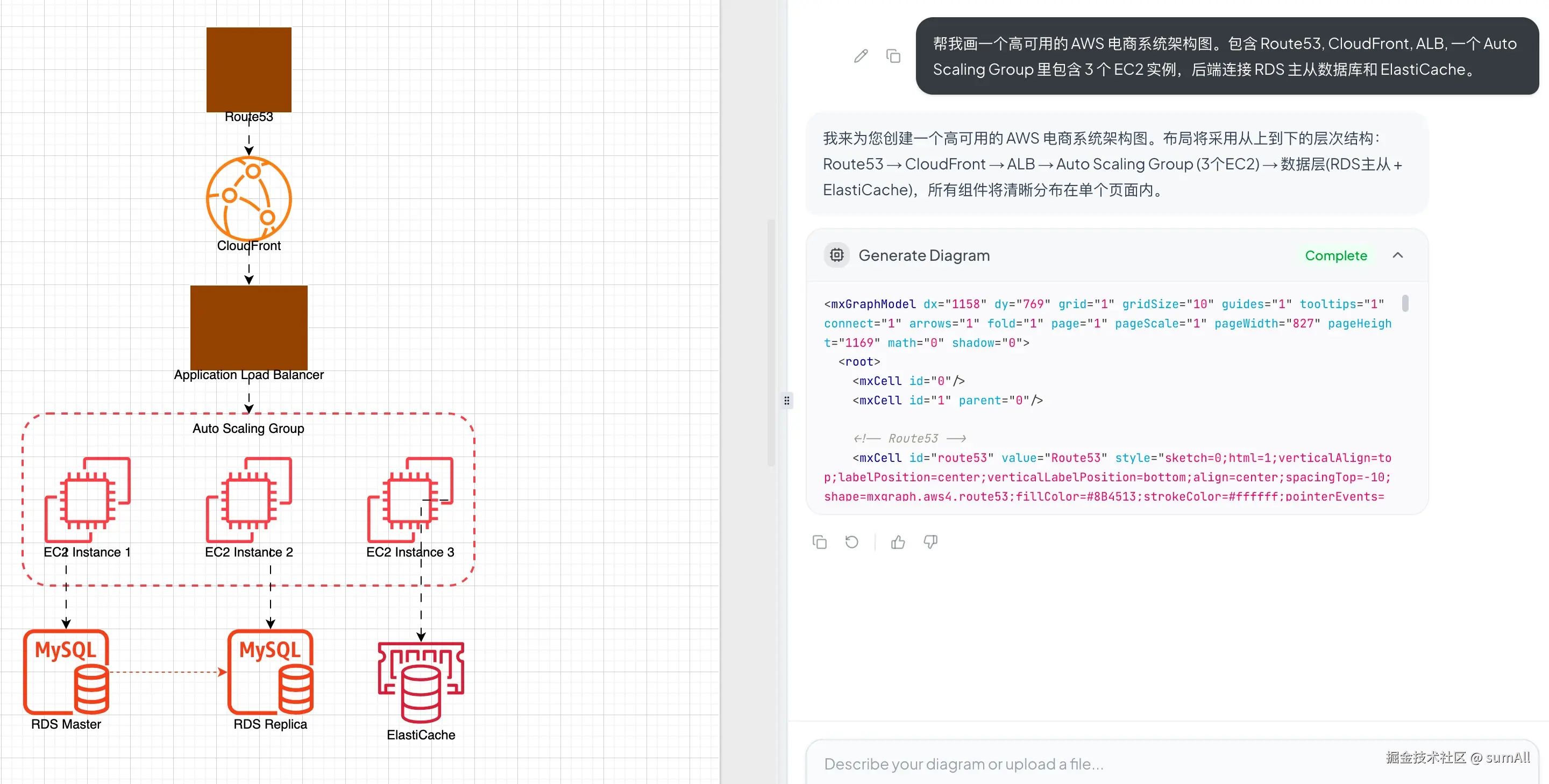 mxCell的层级结构,强制要求 ID 唯一性。 - 样式定义:预设了 AWS、Azure 等图标库的样式代码,让生成的图表不至于太丑。