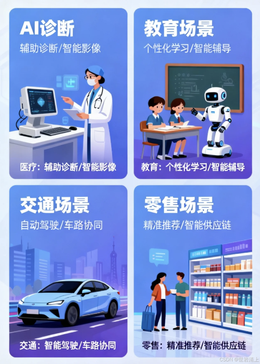 未来,随着算力基础设施的强化与跨学科融合的深化,"人工智能+"还将在环保、农业、文旅等更多领域释放潜能。但无论技术如何迭代,始终要坚守"技术为表、应用为核"的原则------只有让AI真正扎根场景土壤,才能在高质量发展的道路上,既跑出创新速度,又彰显民生温度。