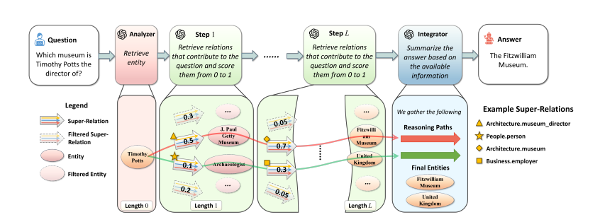 - LLM 汇总所有收集到的推理路径和最终实体,生成最终答案。