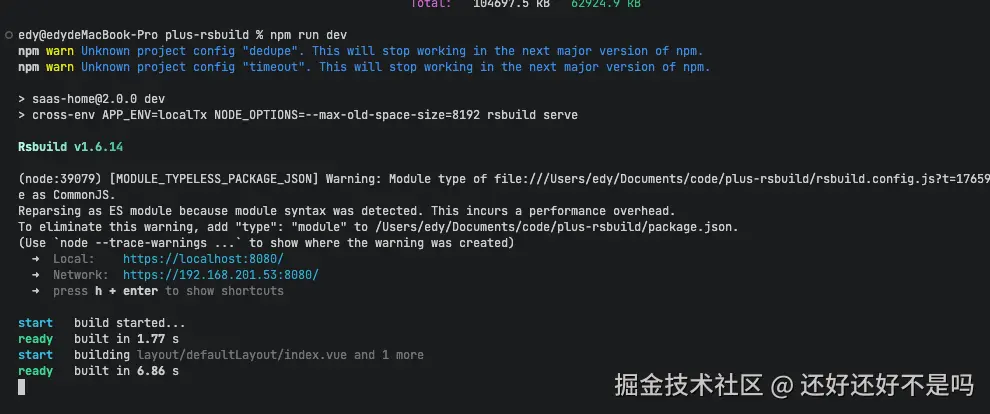 启动项目2秒左右 打开第一次页面7秒左右后续正常访问 总的9秒左右 和vite差不多项目很大
