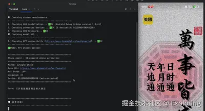 使用 智谱 BigModel 的模型情况下, 环境的搭建还是比较方便的,能够很快把开发环境搭建完成。如果是本地部署模型会比较耗费时间。总体来看还是比较智能的,能够操作挺多 App 的,还需要继续体验,但是目前感觉要商业化这个耗时还得继续优化,我执行了一个搜索火锅的指令,大概整体耗时在35s左右,跟中兴的 AI 手机体验比,耗时还有点多。持续进步吧。