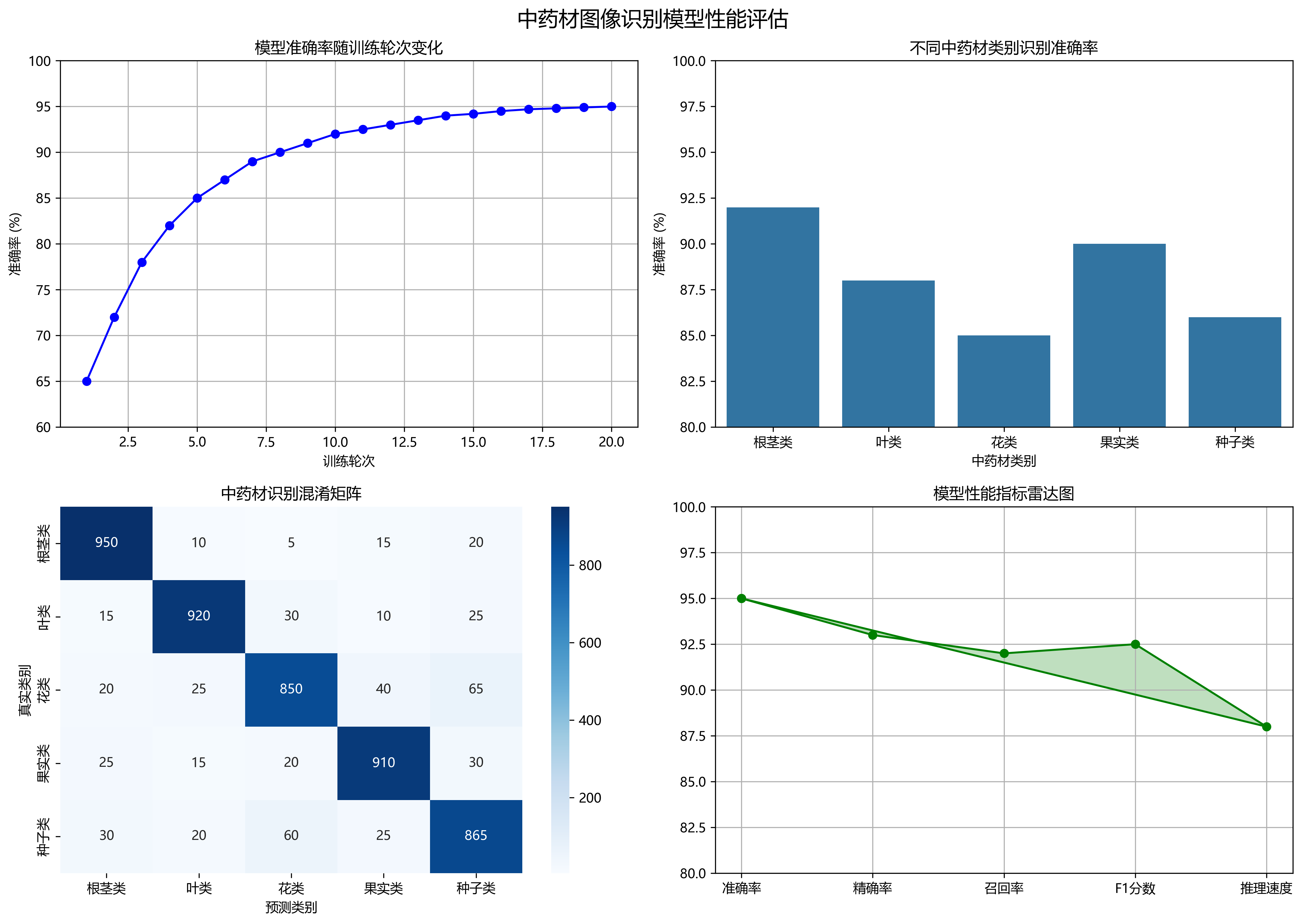 表1展示了不同模型在中药材识别任务上的性能对比: