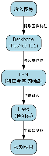 骨干网络负责提取图像特征,ResNet101作为骨干网络具有152层深度,能够捕获图像的多层次特征表示。中药材图像通常具有复杂的纹理和细节特征,ResNet101的深度结构非常适合捕捉这些特征。