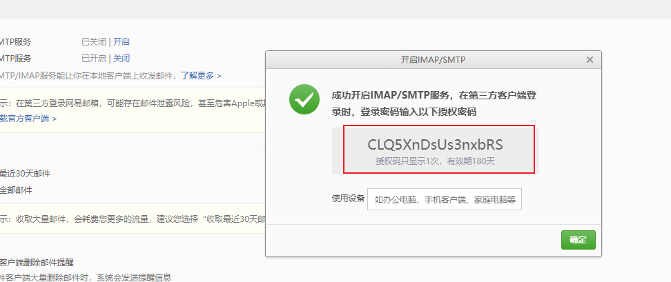 smtpPassword 发送密码
