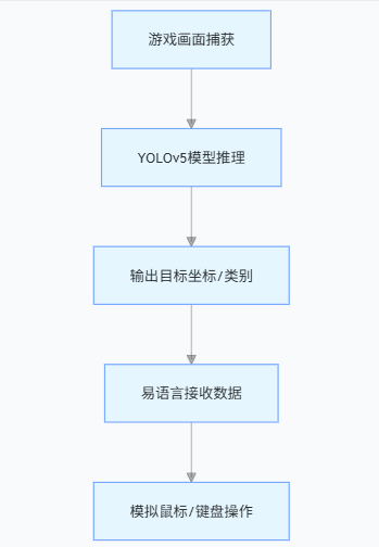 YOLOv5 是基于深度学习的目标检测算法,优势是实时性强、能识别多目标、抗光影干扰,适合 FPS 游戏中敌人、武器、爆头点等复杂目标识别。整体流程: