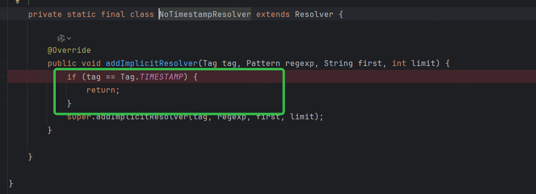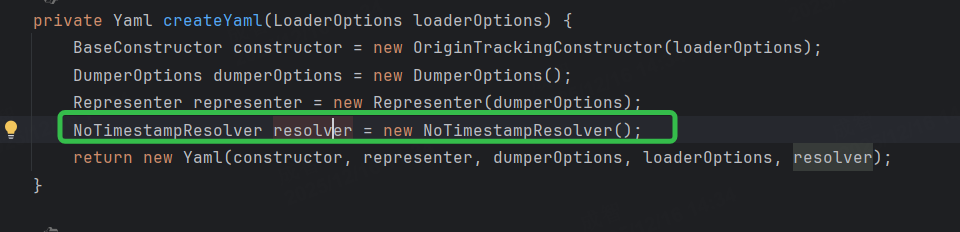 OriginTrackedYamlLoader类中的createYaml针对日期类标签做了特殊处理,不使用snakeyaml处理,而是将日期类的标签统一返回为字符串,然后在后续的操作中根据实体的属性类型进行了转换。