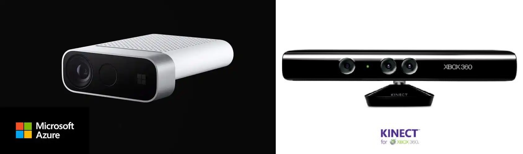 左边这个是 Azure Kinect,右边那个是 Kinect,或者叫 Microsoft Kinect 或者 Kinect for Windows,它两既长得不一样,用法也不一样,所以不要弄混了。Azure Kinect 用起来要简单一些。