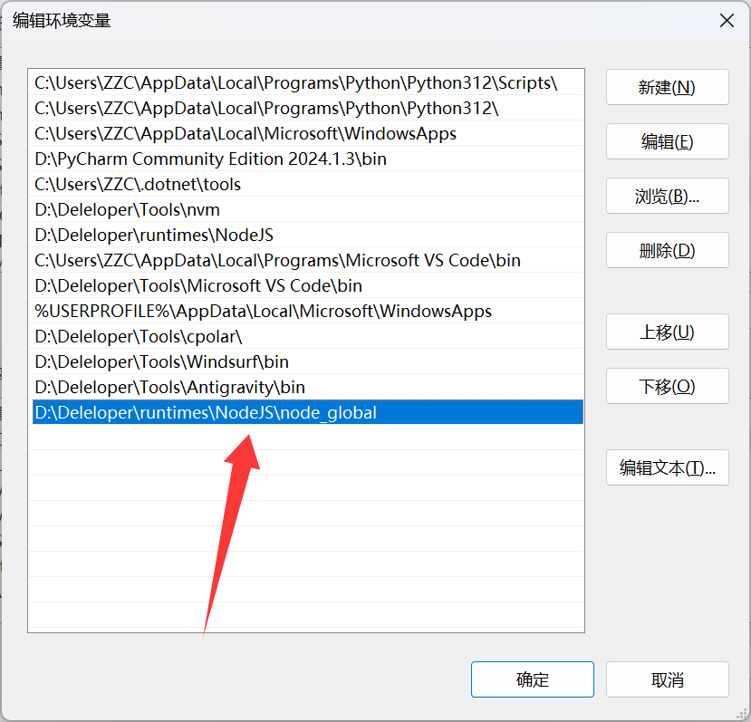 ...AppData\Roaming\npm改成你的node_global路径