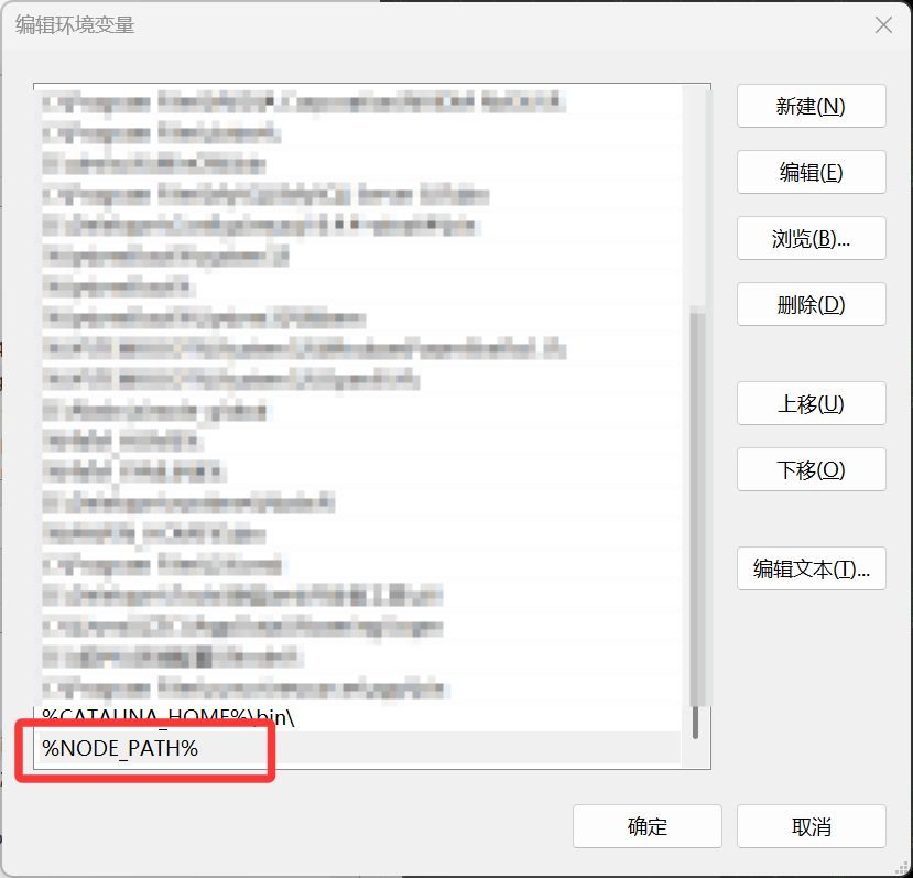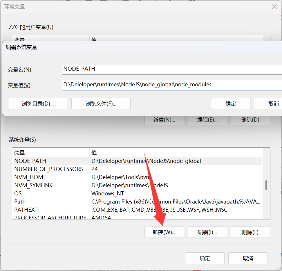 Path-> "编辑" -> "新建" -> 输入:%NODE_PATH% -