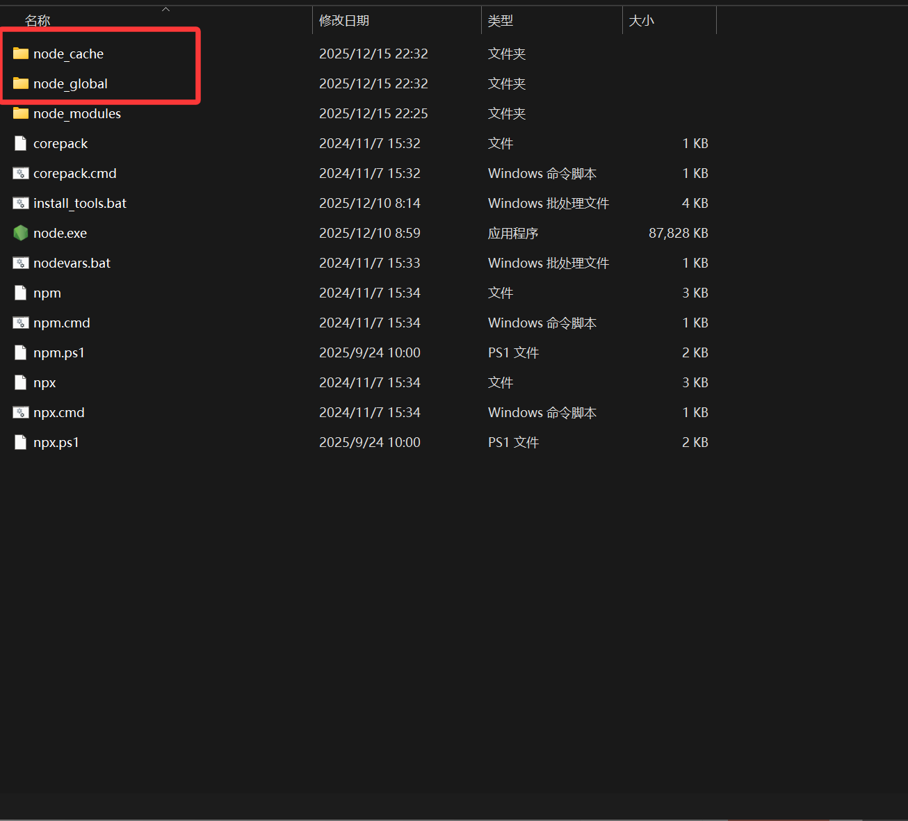 - 打开你的 Node.js 安装目录,新建两个文件夹: